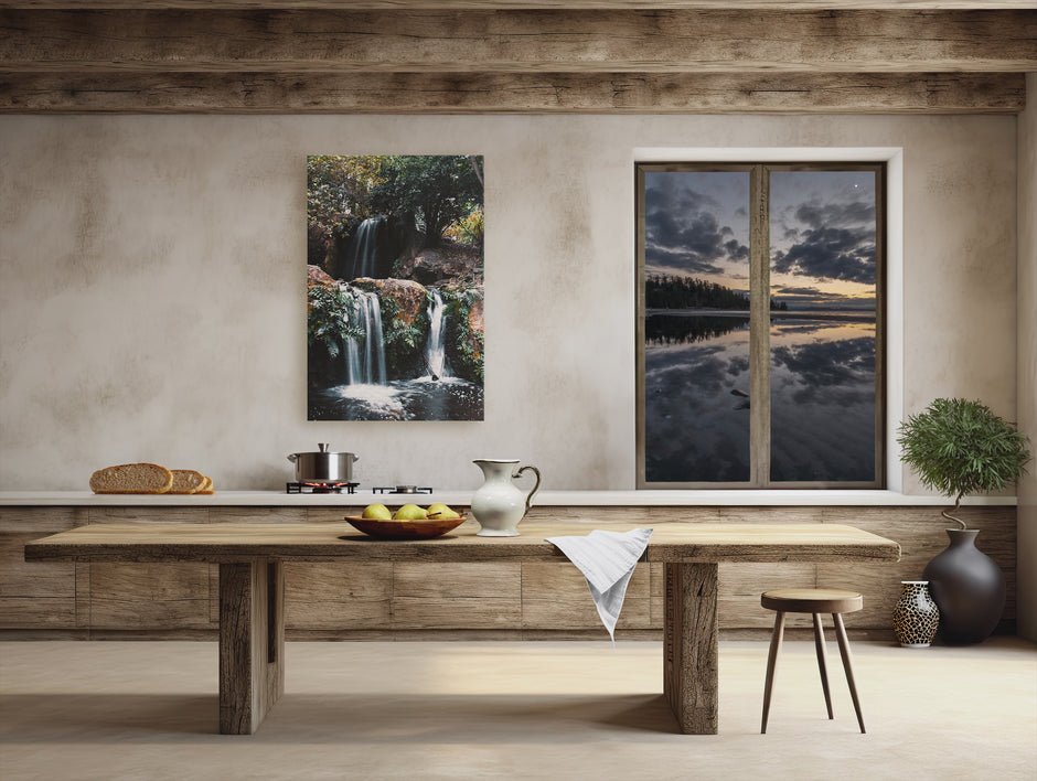We provide two types of printing options - Giclee photo paper and Giclee canvas. The photo paper has a smooth textured finish and is weighted which gives it that museum grade look, the canvas print has a greater textured finish and allows for flexible framing options. Both choices offer fantastic visual results with no glare, their differences are highlighted when it comes to the framing process. If you are opting for a traditional wooden frame with a glass mount we recommend the photo paper as the smoother finish will better reflect light and provide a slightly brighter visual, in the scenario where you are wanting a frame without glass then canvas is the ideal option as it's designed to be viewed without a barrier while still protecting the print. A traditional frame can nicely add and enhance the photo, while a stretched canvas look can impressively display the artwork without any visible frame.